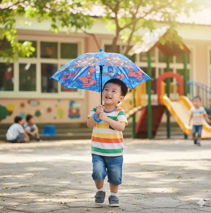 Nhiều phụ huynh chỉ mua ô đi mưa nhưng quên rằng trẻ cũng cần được chống nắng khi đi học hoặc hoạt động ngoài trời. Một chiếc ô trẻ em đạt chuẩn nên có lớp phủ chống UV, giúp bảo vệ làn da mỏng manh của bé khỏi tia cực tím gây hại.